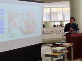 今日の授業では、NOSE ART GARAGE fukumitsu の森松祐史さんを講師に迎え、和菓子の制作に向けたアイディアや季節をイメージする色などの話をしていただきました。