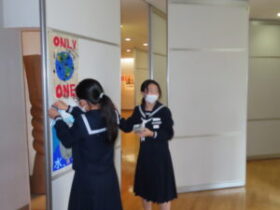 各学年とも、1組のスペースを中心に展示することになっているため、1組の生徒は多目的教室Aで授業等の活動をします。