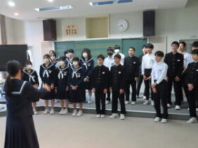 学習発表会に向けて⑥「合唱練習」 2025年10月22日 福光中学校 活動記録 今週は、朝活動と放課後の時間に「合唱練習」をしています。 ラウンジや体育館、音楽室など、割り当てられた場所で学級ごとに活動しています。合唱コンクールで、それぞれの学級カラーが発揮できるよう取り組んでいます。