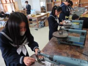2年生の美術科の授業では、「木彫」の学習をしています。