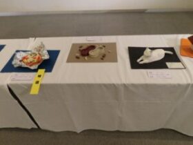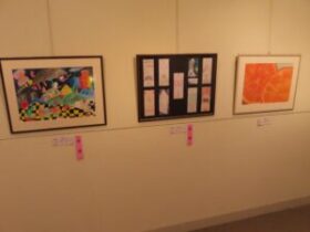 福光中学校からは、美術部員や授業で制作した作品が出品されました。様々な学校の創造的な作品が並ぶ素敵な空間でした。