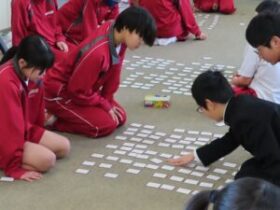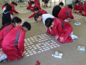 読み札を読み上げた後、なかなか取ることができないグループもあり、必死に札を探す姿も見られました。札を取った後には笑顔や歓声が広がり、楽しい時間になりました。