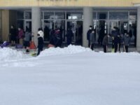 歩く道もない状態でしたが、登校した生徒や教職員が協力して除雪を行いました。