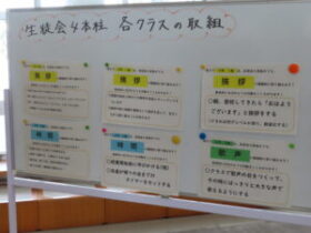 今、各学級ごとに「生徒会4本柱」に対する取り組みをしています。