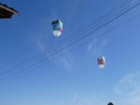 ふくみつ雪あかり祭り 2026年2月16日 福光中学校 活動記録 14日(土)に「ふくみつ雪あかり祭り」が実施され、美術部が制作した巨大紙風船があがりました。 青空の下、様々な紙風船が舞う様子は、見る人たちを楽しませていました。
