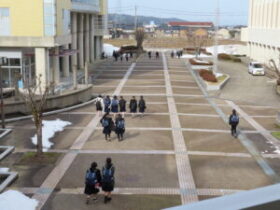 3連休は暖かい日が続き、校庭やグラウンドの雪はすっかり消え、今日は自転車で通学する生徒も何人か見られました。