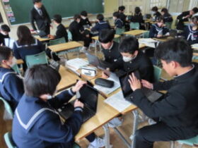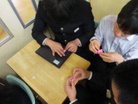 2年生は、奈良公園班別学習に向けて見学場所や見どころなどを調べました。また、広島での活動に向け、千羽鶴づくりにも取り組んでいます。