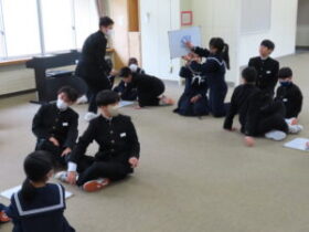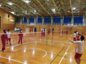 1組は学年フロアでクイズなどを行い、2組は体育館でバドミントンを行いました。
