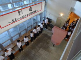 2年生「学年登校日」 2025年8月22日 福光中学校 学年, 活動記録 今日は、2年生の「学年登校日」の日です。 活動の中には、体育大会に向けた学年種目の打合せ、準備がありました。担当の生徒から種目説明があり、体育館で練習を行いました。 いよいよ来週の火曜日から2学期が始まります。9月1日からは「社会に学ぶ『14歳の挑戦』」にも取り組みます。 しっかり準備をし、2学期のよいスタートを切りたいです。